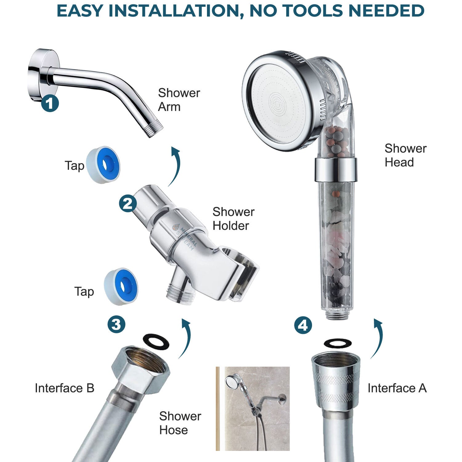 En absoluto. La instalación es muy sencilla y no requiere herramientas especiales. Solo tienes que apretar a mano la manguera de repuesto en tu alcachofa de ducha y toma de agua existentes para una conexión segura y sin fugas.