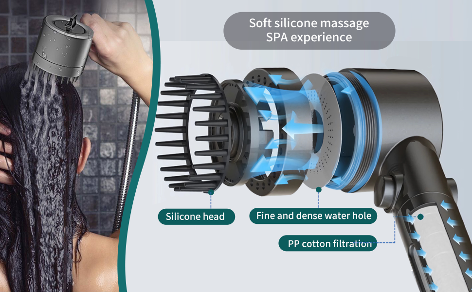 Utiliza boquillas ajustables para crear varias configuraciones de presión de agua, proporcionando un efecto de masaje relajante durante la ducha.