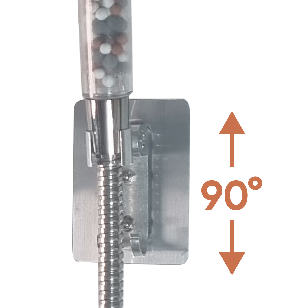 The MineralStream Shower Head Bracket features a swivel design that allows for easy adjustment of the shower head ang, le—offering both straight and tilted positions up to approximately 90 degrees. This flexible positioning ensures a more enjoyable and personalised shower experience.